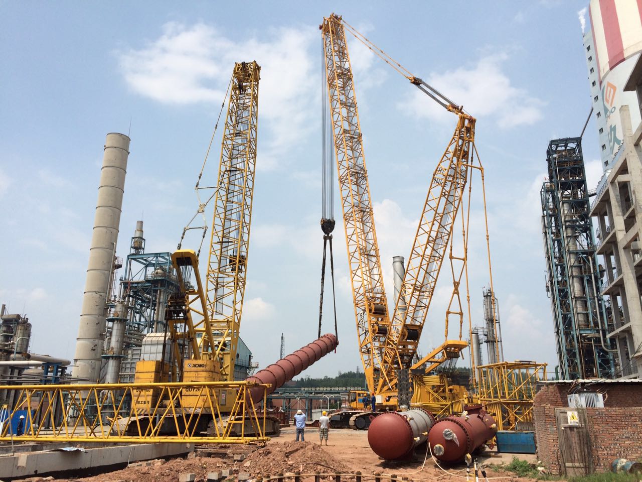 多晶硅 大型蒸發器吊裝(500T汽車吊和260T汽車吊) 多晶硅650T履帶吊 綿陽京東方 硝酸吸收塔 脫硫設備吊裝 650T和260T雙…【了解詳情】